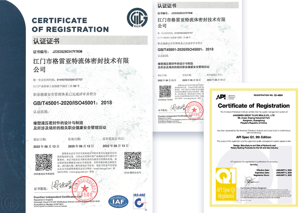 依托自主创新技术优势并借助知识产权保护,格雷亚特的核心竞争力持续提高。公司已通过美国石油学会API Spec Q1,9th Edition体系、国际ISO9001质量体系、ISO14001环境管理体系以及ISO45001职业健康安全管理体系认证。产品涉及50余类工程塑胶材料、100多种截面形状、500多个材料配方、20000余款产品规格,能根据客户使用要求,为客户提供整套密封设计方案。